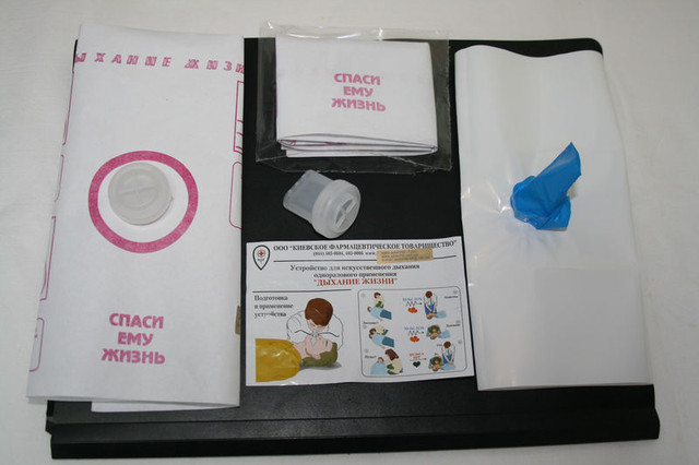 Серед широкого переліку медицинських виробів, вироблених сьогодні Київським фармацевтичним товариством, варто звернути увагу на Пристрій для штучного дихання одноразового використання "Подих життя".Завдяки присутності цього виробу у кожній нашій аптечці, можна бути впевненим, що у разі екстремальної ситуації (відсутності дихання, пульсу) потерпілому буде надано невідкладну медичну допомогу.Пристрій використовується для проведення штучного дихання методом "рот-в-рот", як дорослим, так і дітям, у випадку серцево-легеневої реанімації при клінічній серті або для полегшення дихання потерпілого у шоковому стані.
