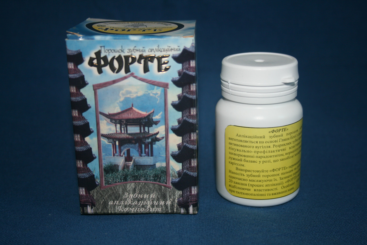 Порошок "Форте" розпушує зубний камінь, має лікувально-профілактичні властивості при захворюванні парадонтитом, нормалізує кислотно-лужний баланс в ротовій порожнині, що перешкоджає захворювання карієсом.